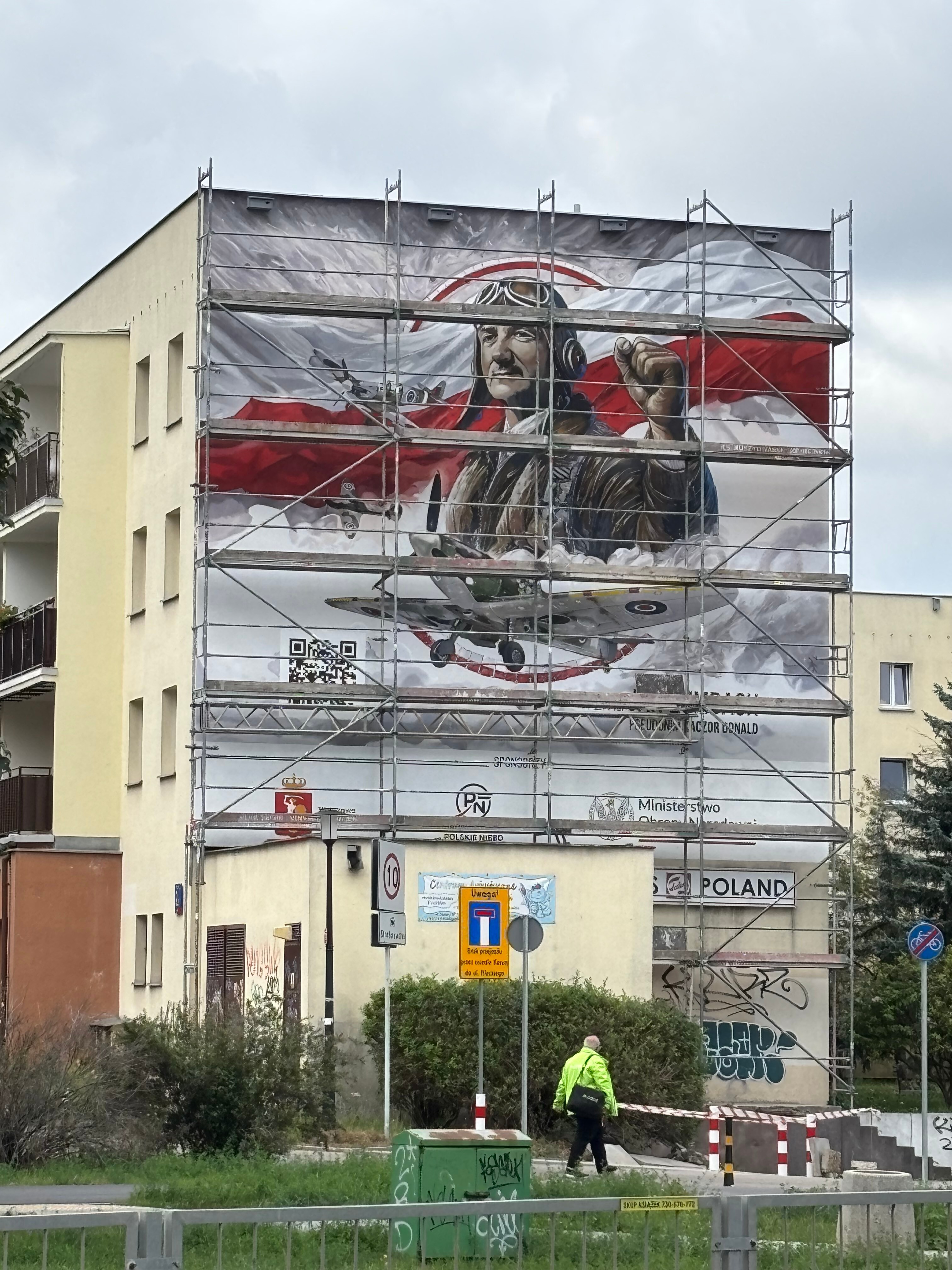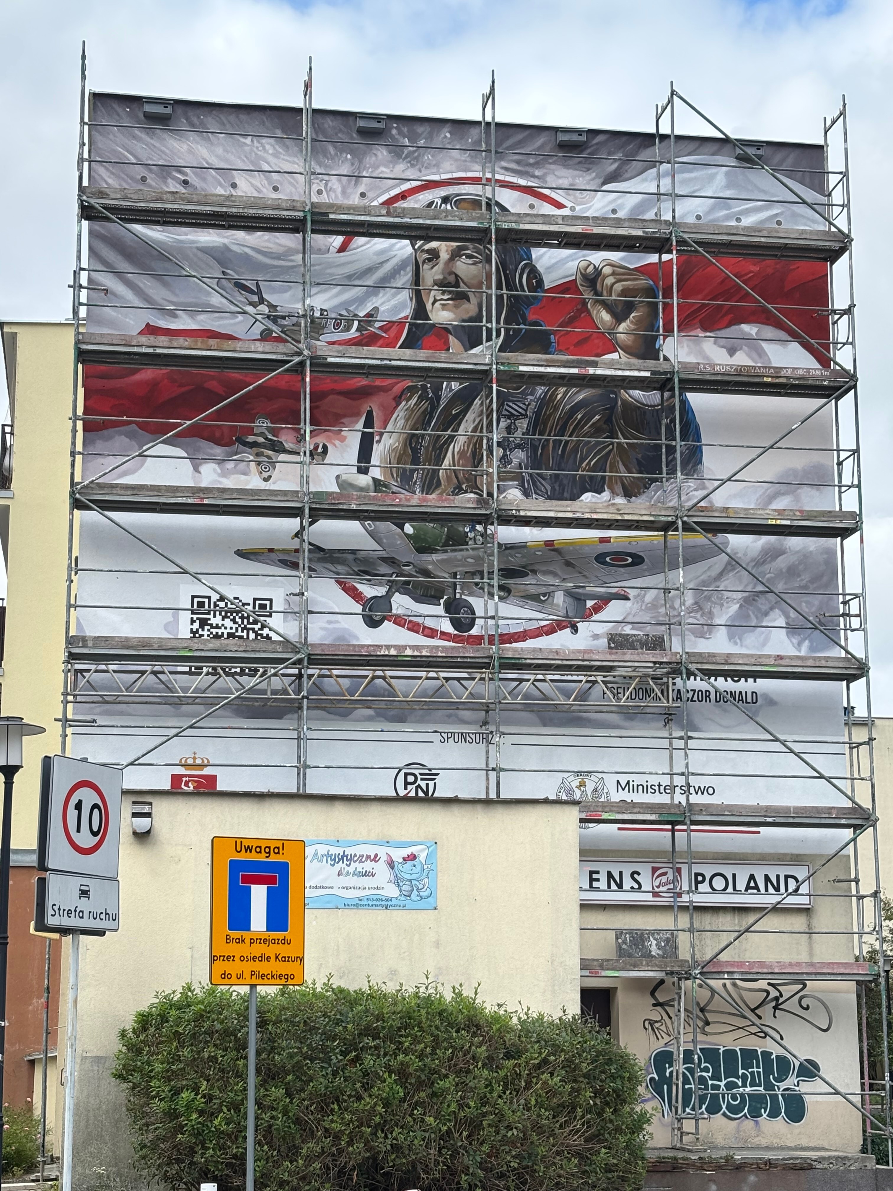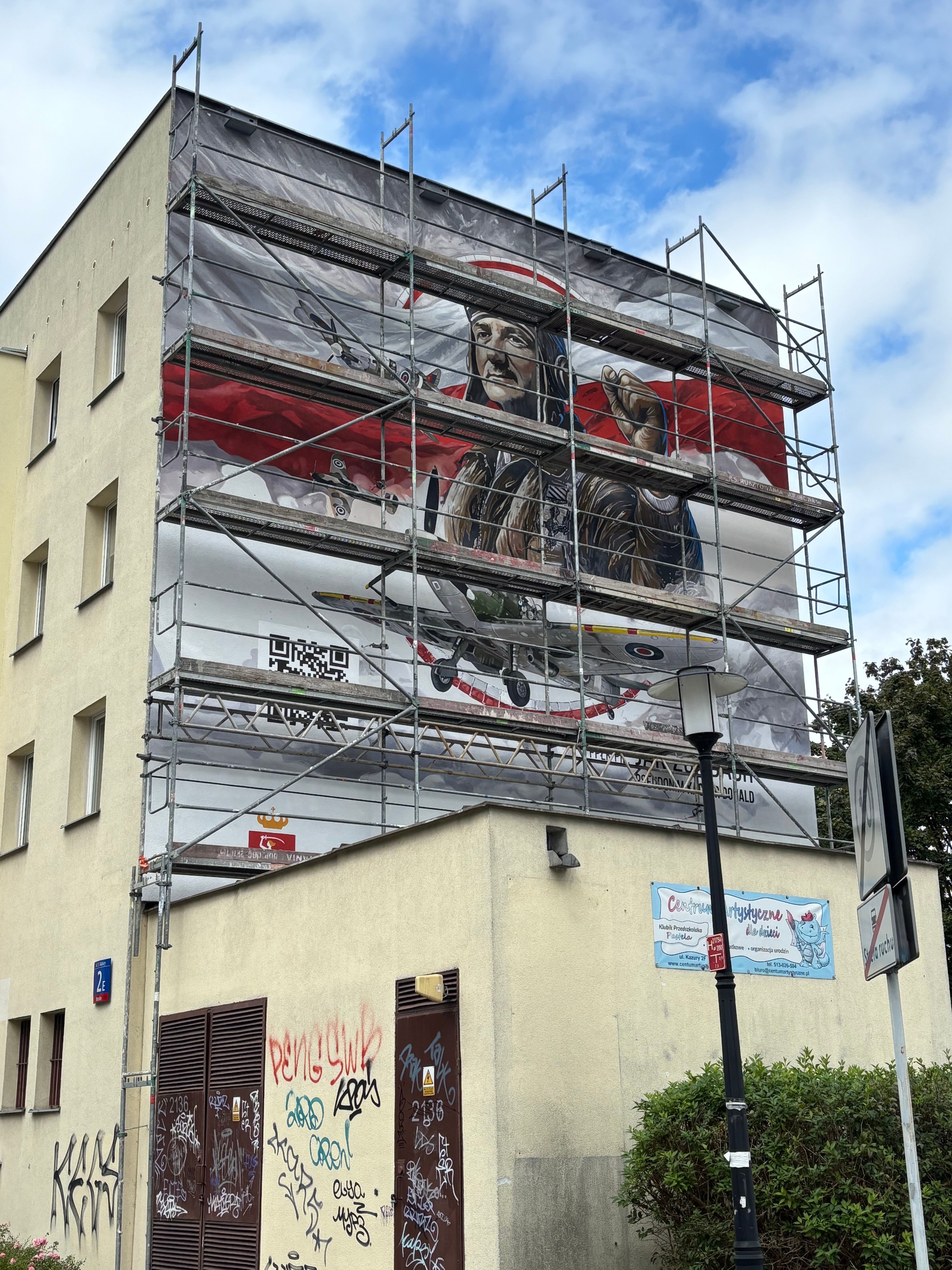 Mural przedstawiający Jana Zumbacha, legendarnego pilota Dywizjonu 303, powstał przy ul. Kazury 2e w Warszawie.